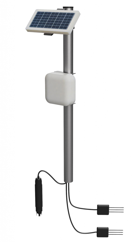 Se instala enterrado a diferentes profundidades y tiene rangos de -30℃-+70℃ (±0.5℃) con resolución de 0.1℃ y 0-100 %HR con resolución de 0.1%(±3%).